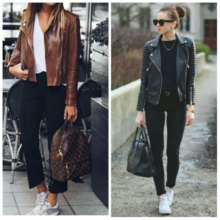 5- Wear a short sweater with a denim nd a leather jacket over it this look will make you look bold nd stylish..Either leave your hair open or tie them up into a messy bun and wear your sneakers to complete this look..You can also wear boots to make this look more bold nd stylish.Relevant pic below-